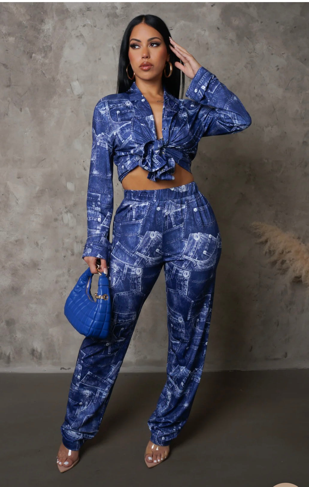 Hermoso set, con parches simulando denim,